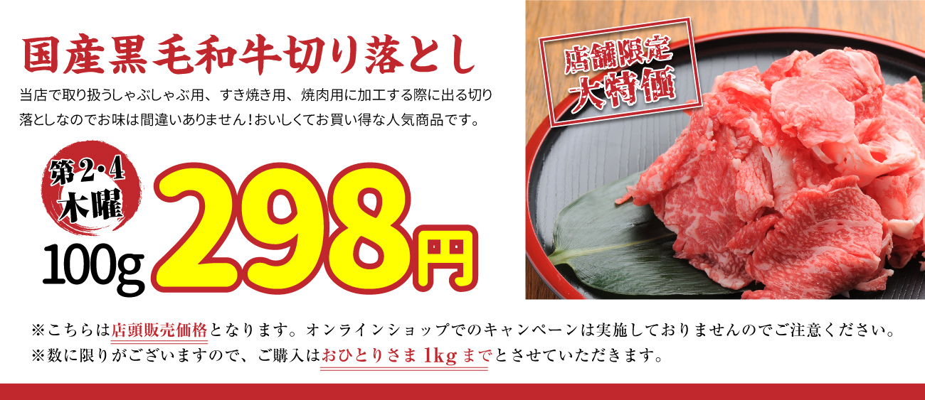 さらに、リニューアルオープンの10月11日(木)には毎月大好評イベントの国産黒毛和牛の切り落としが100円引きの298円で提供する牛コマ祭り(1人1kgまで、店舗販売のみ)&ポイント2倍の同時開催!