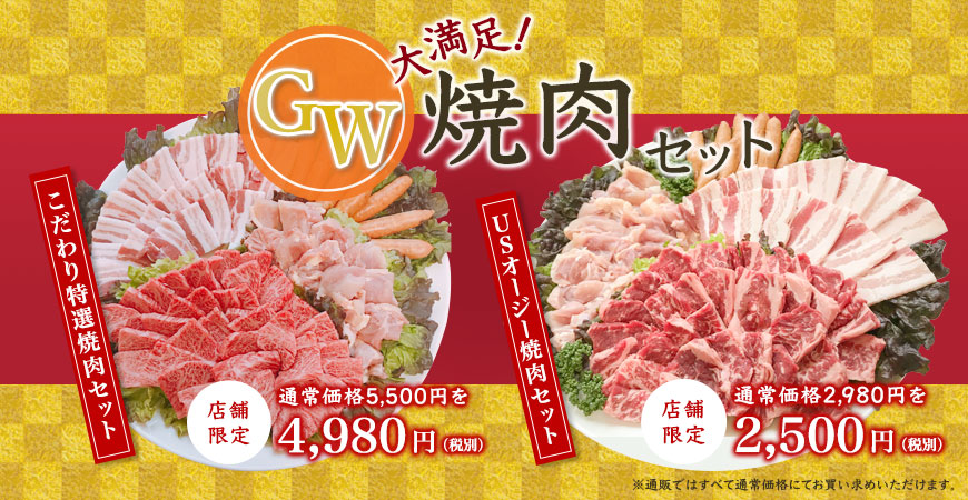 ※「こだわり特選焼肉セット」と、「USオージー焼肉セット」は通販でもご注文は可能ですが、クーポンのご利用は店頭のみとなっております。